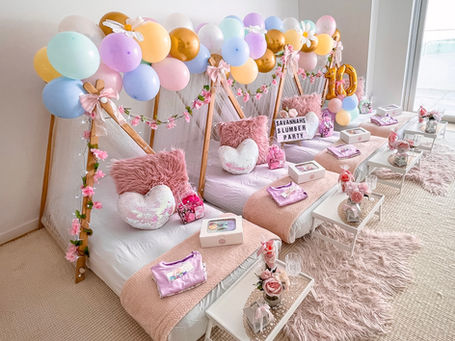 Everything you need for an amazing slumber party with friends is included. Both full set up and DIY come with the same inclusions. Our beautiful handmade Teepees have lace or sheer sparkly covers. Our blankets are luxurious and our linen is crisp. The breakfast trays can be set up anywhere in your intended space and our lanterns and fairy lights light up so pretty as if you are sleeping under the stars. There's a matching letter sign with an easel for the special one, along with so many matching accessories and decorations to make an enchanted and magical teepee slumber party!